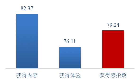 上海营商环境企业获得感(民营、外资)指数为79.24,其中,“获得内容”得分为82.37,“获得体验”得分为76.11。