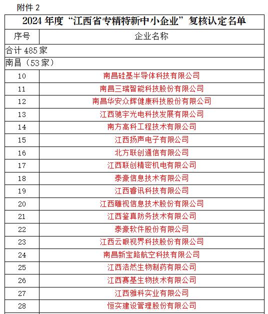 近日,江西省工业和信息化厅公布了2024年度“江西省专精特新中小企业”名单。