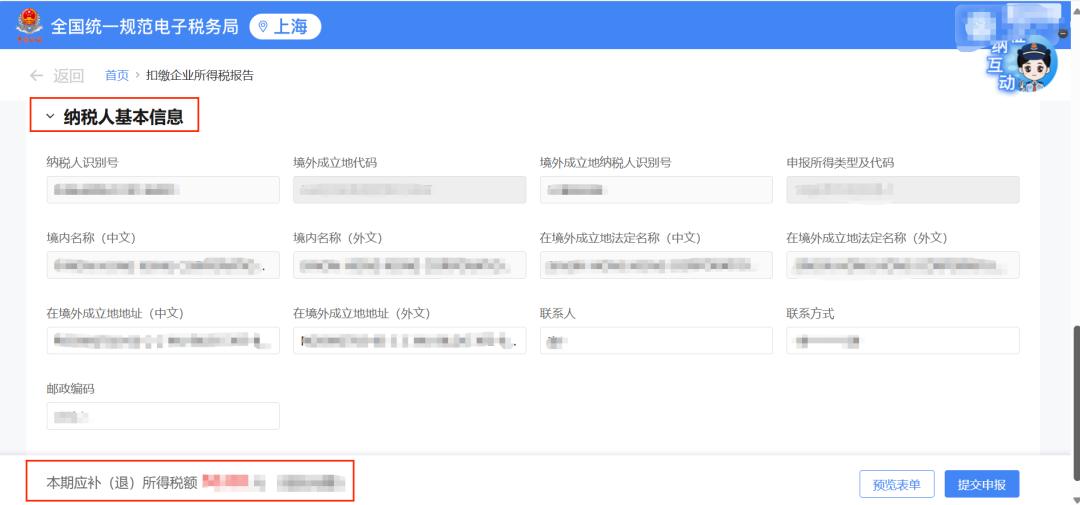 4.核对扣缴义务人基本信息、纳税人信息、本期应补(退)所得税额准确无误后,点击提交申报。