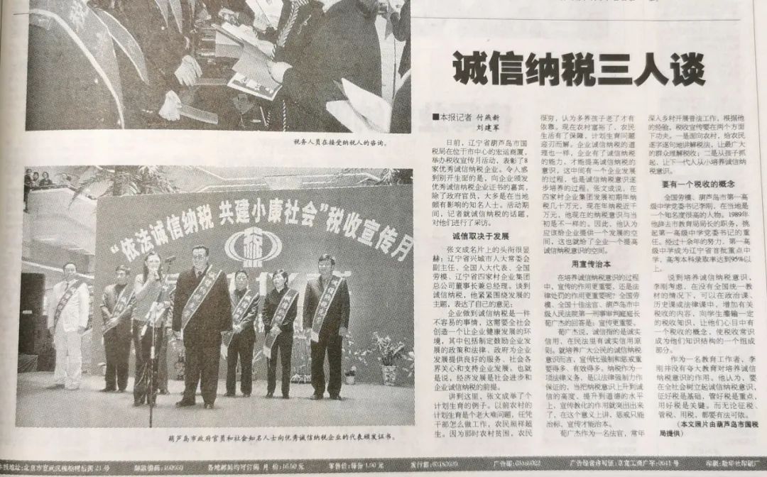 2003年4月,辽宁省葫芦岛市国税局表彰了8家优秀诚信纳税企业