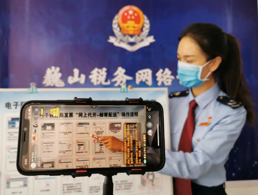 国家税务总局巍山县税务局多措并举,持续推进“非接触式”办税。图为近日税务干部通过网络直播的方式,为纳税人讲解发票网上代开流程。