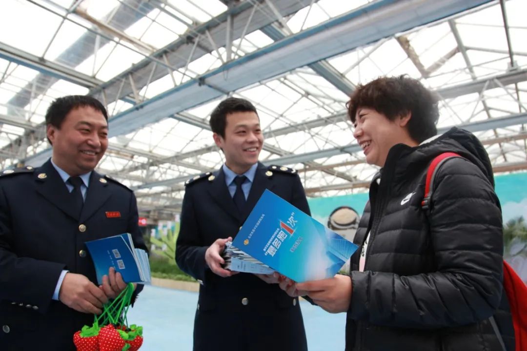 税收宣传月期间,北京市昌平区地税局联合区国税局在第六届北京农业嘉年华景区内向游客和进驻商家宣传“最多跑一次”办税事项。