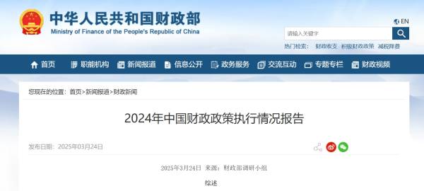 财政部网站3月24日发布“2024年中国财政政策执行情况报告”: