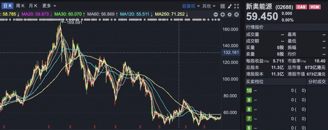 以3月26日收盘价计算,新奥股份最新市值609亿元,新奥能源最新市值为673亿港元。
