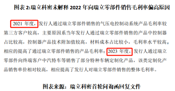 首轮问询回复显示,报告期内,瑞立科密主要向瑞立零部件销售气压电控制动系统和液压电控制动系统。