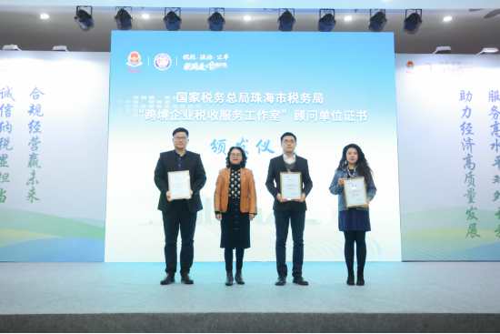 活动现场,税务部门为珠海市进出口商会、珠海市对外经济合作企业协会、珠海外商投资企业协会3家商协会颁发了“跨境企业税收服务工作室”顾问单位证书,通过整合商协会资源与税务专业力量,在政策咨询、风险预警、权益维护等方面为跨境企业提供高质量服务。珠海市进出口商会常务副会长兼秘书长郭翔表示“我们作为顾问单位,接下来将发挥好税企间的桥梁纽带作用,进一步密切税企沟通,助力企业财税人员能力建设、构建合规经营生态,更好地为跨境企业提供服务”。