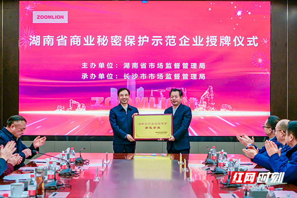 1月19日,省市场监管局为省级商业秘密保护示范企业——中联重科股份有限公司授牌。(刘张鸣/摄)