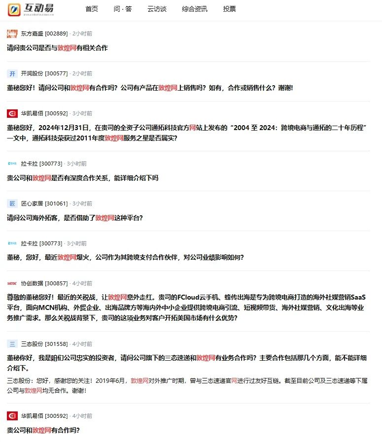 伴随敦煌网(DHgate)在美国“出圈”,投资者纷纷在互动平台上提问上市公司。