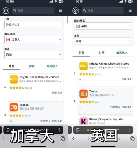 此外,截至4月16日,淘宝已经冲上美国App下载榜第二。同时,在加拿大、英国等国家也升至第二,法国市场排名第一,下载量较关税风波前大幅上升。