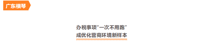 纳税便利化是反映营商环境的重要指标,办税事项“一次不用跑”让横琴纳税便利化程度跃上新台阶,为优化横琴国际化、法治化、便利化、市场化营商环境加码。