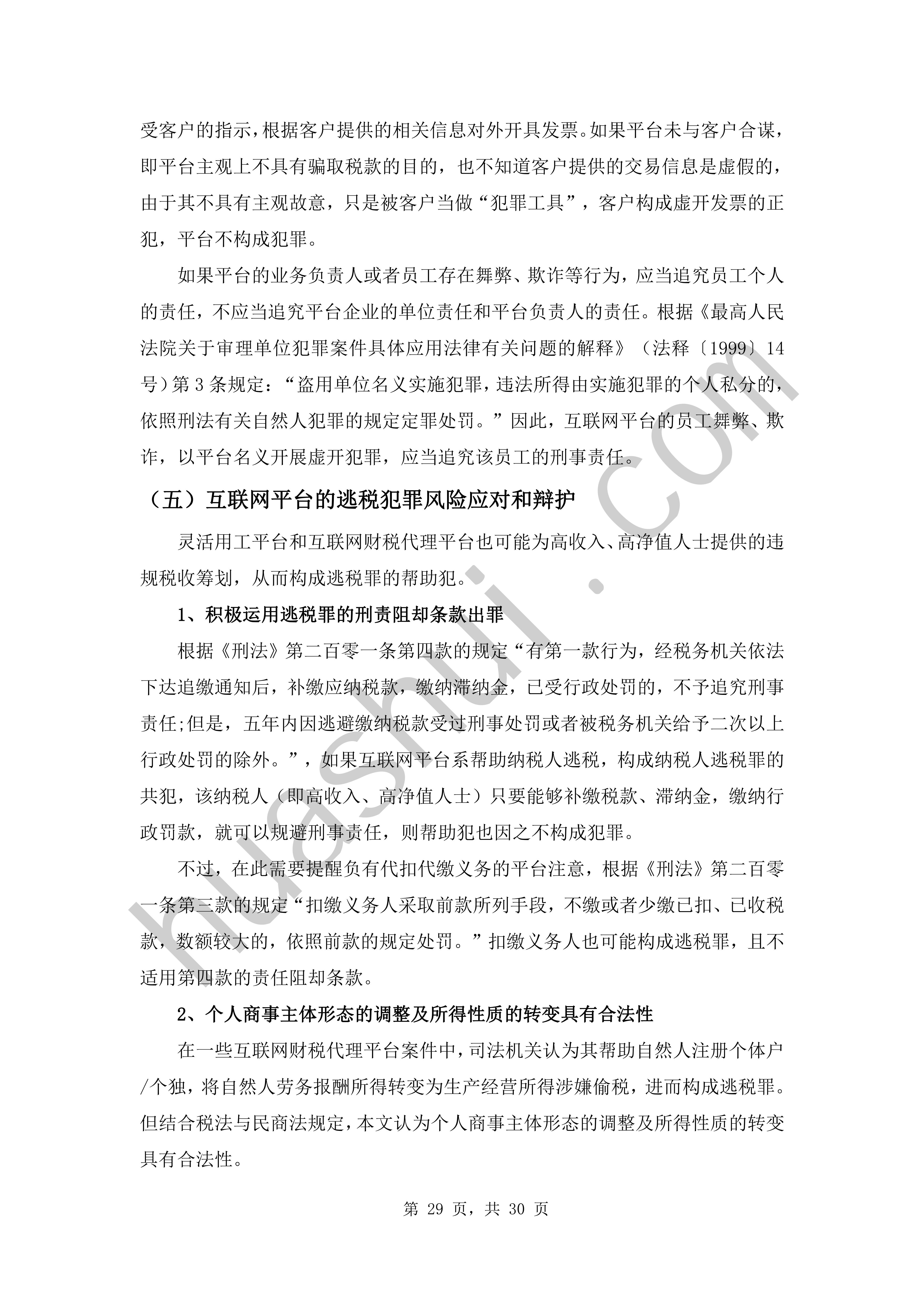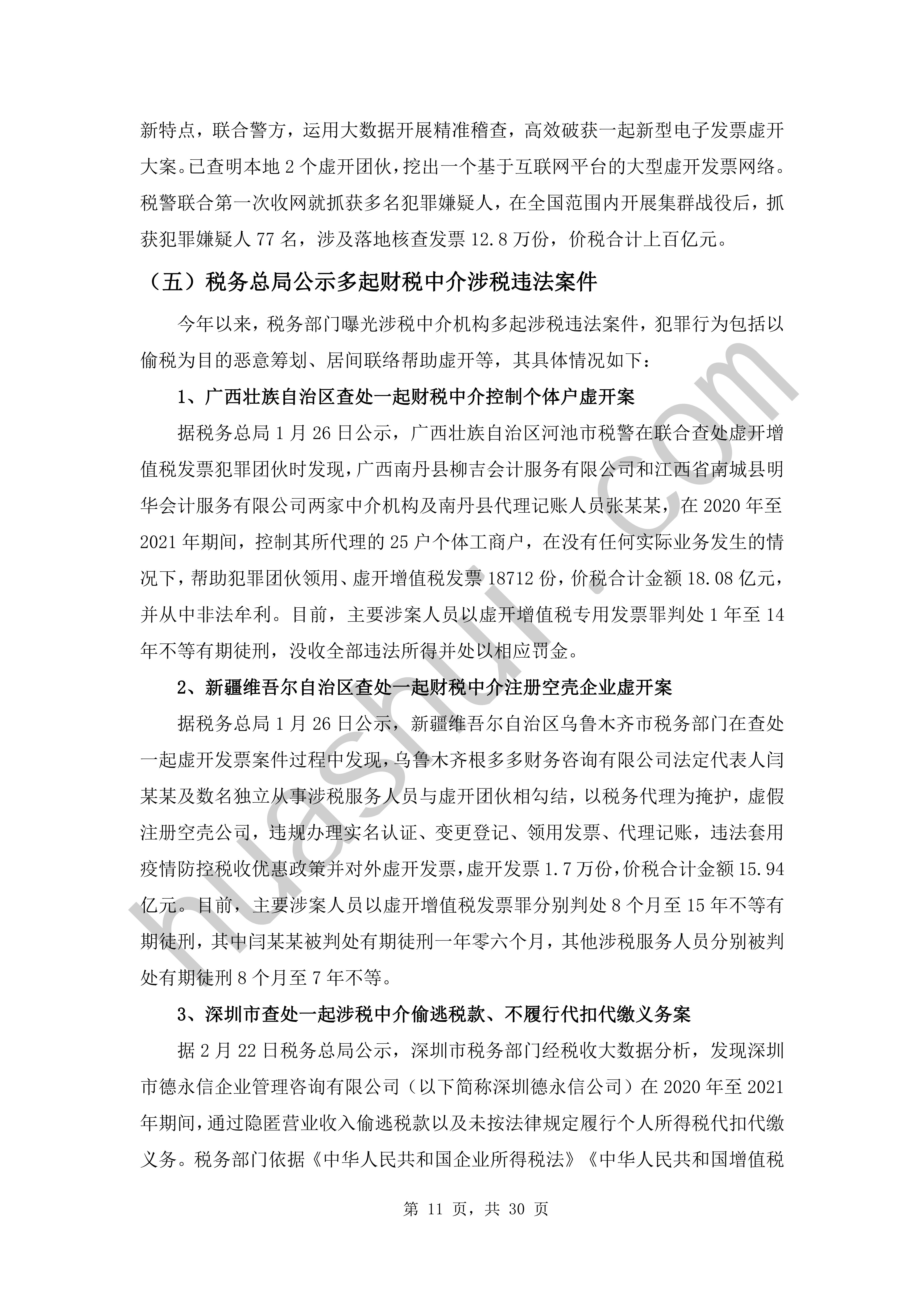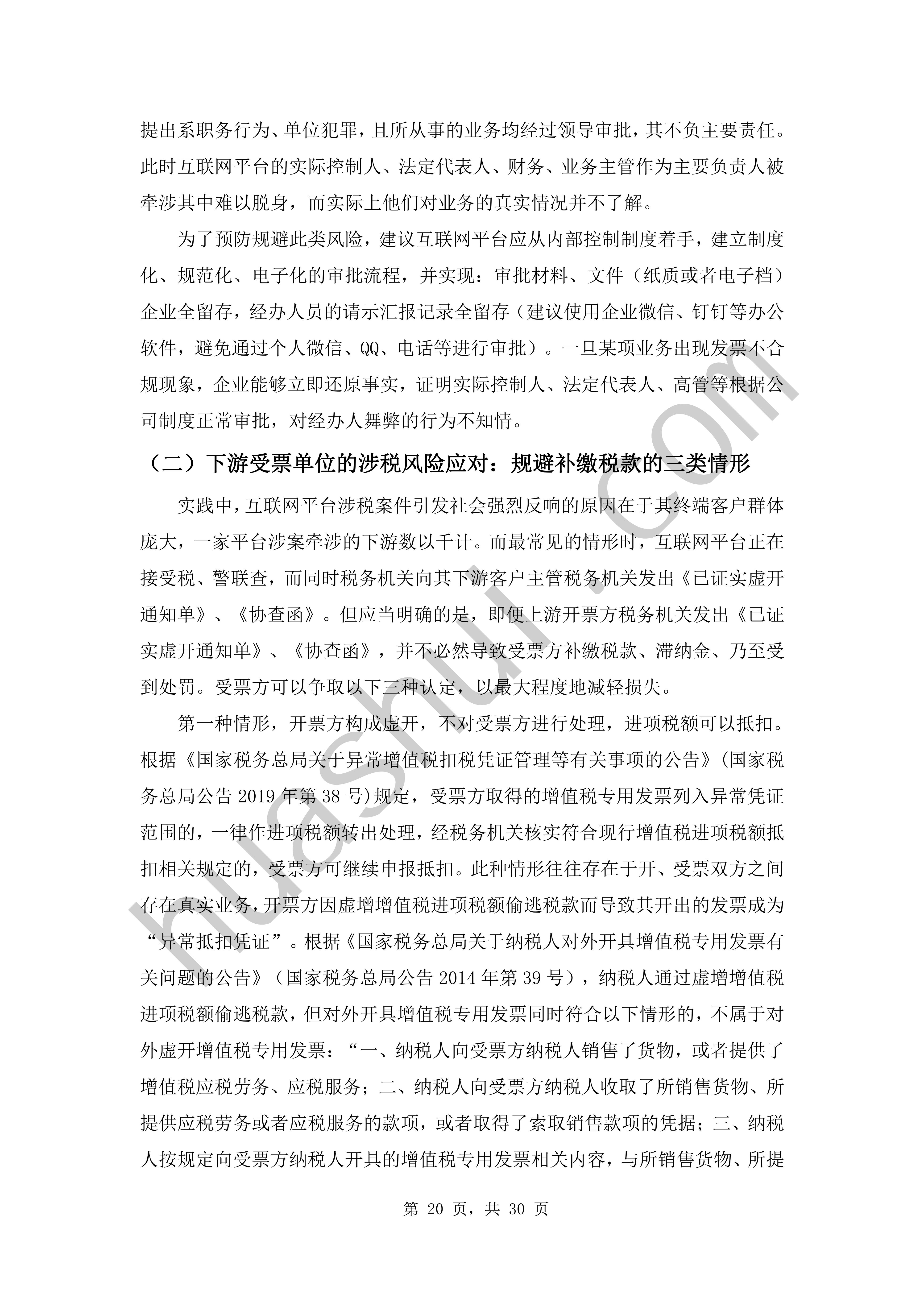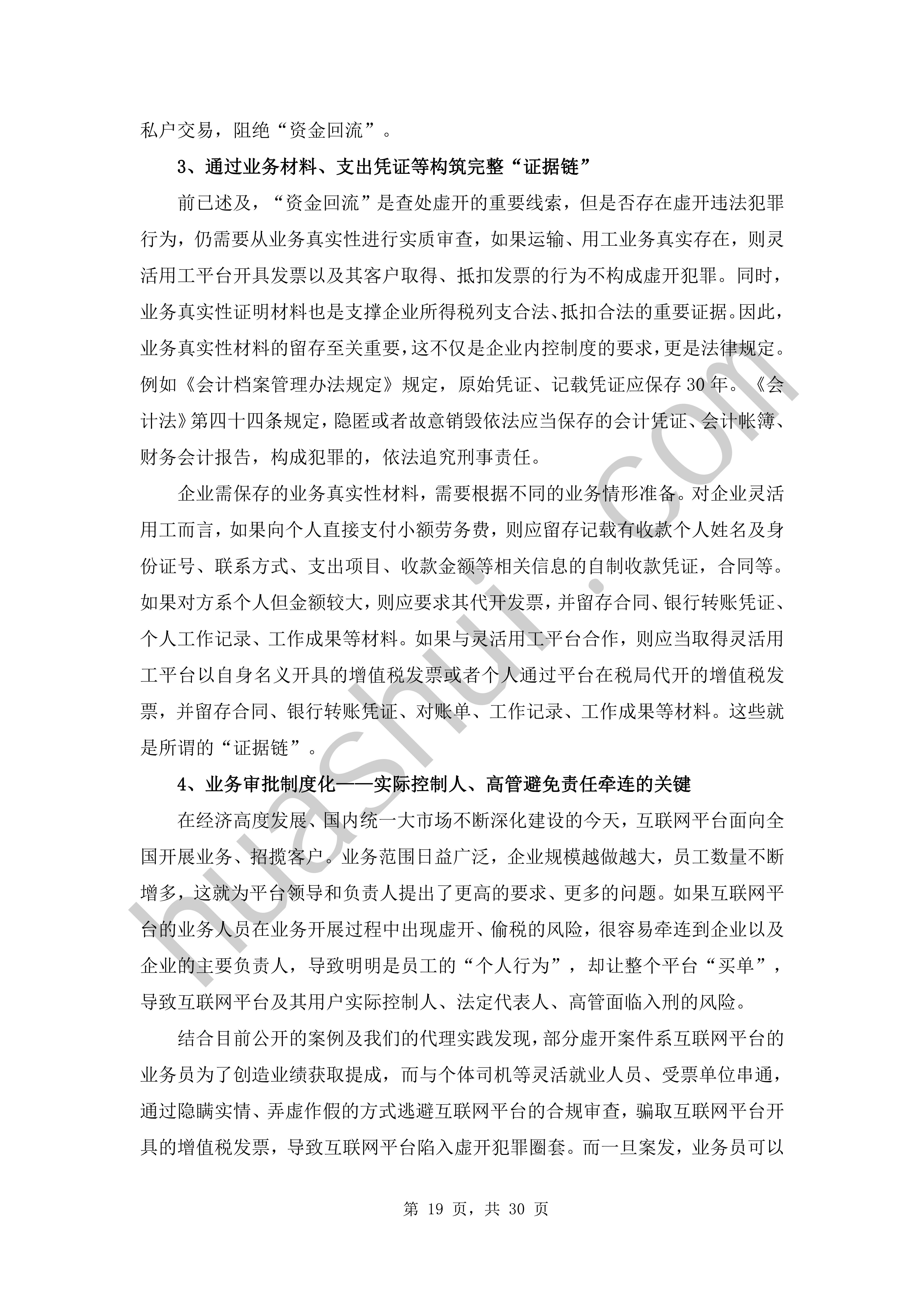 2022年12月26日,中央经济工作会议明确提出“要大力发展数字经济,提升常态化监管水平,支持平台企业在引领发展、创造就业、国际竞争中大显身手。”随着技术的进步、平台经济的进一步发展,平台助力实业的能力会更上层楼,推动传统行业的信息化、技术化、数字化变革,平台经济日益成为经济增长的新动能。然而,互联网平台尚在快速发展时期,国家政策还处在进一步跟进的过程中,税务监管尚不完善;部分平台企业以业务和利润为导向,忽视企业的税务合规建设,业务模式存在漏洞和不足;有不法分子利用监管和平台企业的不足,故意实施骗税、虚开等违法犯罪行为,致使部分平台企业及其客户陷入到涉税行政或刑事风险之中,企业蒙受财产损失,管理层、实控人被追究责任,部分大案要案甚至动摇行业信心,阻碍平台经济的发展。2022年间,以灵活用工平台和互联网财税平台为主的互联网平台依然爆发了相当数量的案件,反映出互联网平台业务开展及税务处理中的薄弱环节,亟需加强税务合规建设。为更好地防范涉税风险、化解涉税问题,华税团队结合互联网平台涉税案件的新发展、新特点及我国税法、刑法的具体规定,形成此《互联网平台税务合规报告(2023)》,以期助力互联网平台行业的发展。
