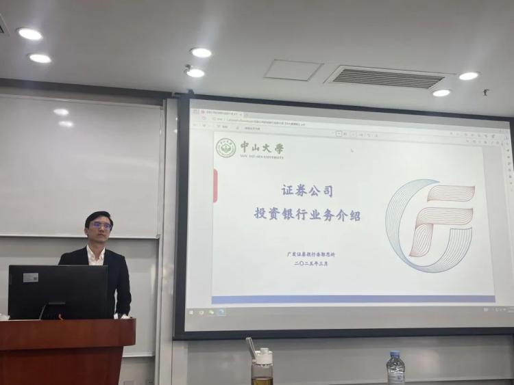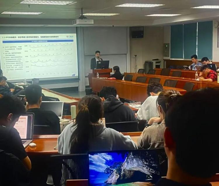 广发证券投行委副总监郭思圻先生,利用时事热点作为开场,用幽默风趣的语言首先介绍了投行近年来的业务情况,告诉同学们投行不止IPO业务,还有并购重组,再融资等其他业务,其次梳理债券业务与并购重组业务的发行业务和流程要点,并分享了投行工作实务,介绍了境外股票市场(如港股)。