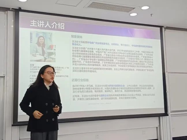 毕马威广州分所党委书记王洁女士,以专业的视角为同学们深入解读IPO相关知识。她详细梳理了IPO的最新监管动态,使同学们对当前IPO审核的趋势和重点关注领域有了清晰的认识。王洁女士还全面介绍了IPO财务核查的主要方式,强调了财务核查在确保企业财务数据真实性、准确性和完整性中的关键作用。此外,她从会计核算的角度,深入剖析了相关会计准则和实际案例,帮助同学们更好地理解和掌握会计核算方法。最后,她向同学们普及了相关的财务实务知识,为同学们未来在财务领域的学习和实践提供了宝贵的指导,赢得了同学们的广泛好评。