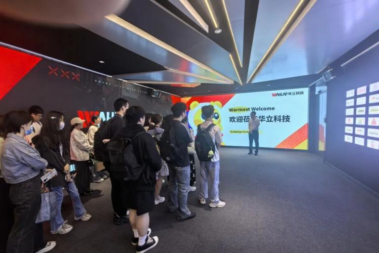 华立科技董秘华总向师生们详细介绍了公司的发展历程、主营业务及全球业务布局,展现了其作为行业领军企业的综合实力。随后,同学们参观了华立科技的游戏展厅,一进门便被融合AI、VR、AR等前沿技术的游戏游艺设备所吸引。这些创新产品不仅体现了华立科技在技术研发上的深耕,也为文化娱乐产业的未来发展趋势提供了生动范例,让师生们沉浸式体验了科技与娱乐深度融合的魅力。