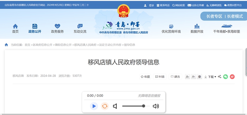 即墨区移风店镇人民政府公布领导班子信息