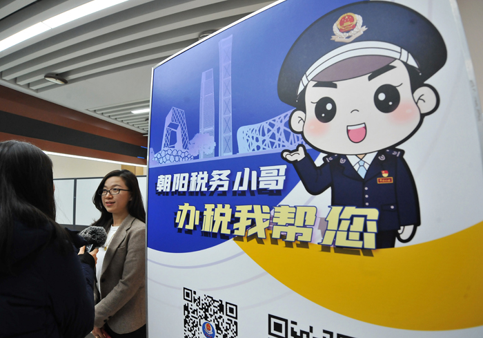 北京市朝阳区税务局第一税务所所长邓怡平介绍道:“我们把‘朝阳税务小哥’的形象置放在办税服务厅的各个角落,在为纳税人缴费人办理业务的过程中,将‘朝阳税务小哥,办税我帮您’的初心意识贯穿日常工作每一个细节。”