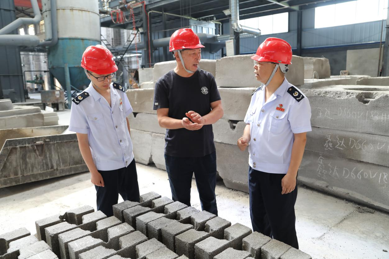 税务干部了解企业生产经营情况,上门开展纳税信用宣传辅导。(摄影:郑凯丽)