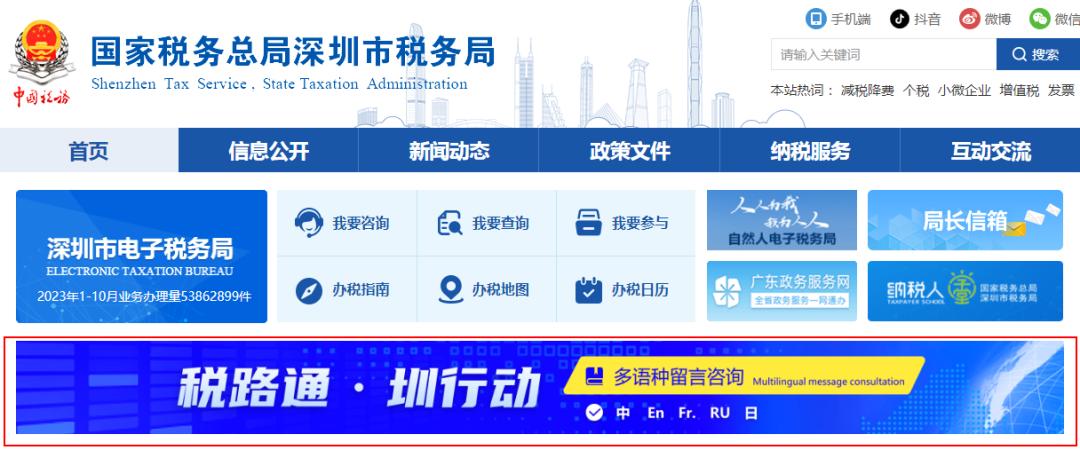 2024年9月29日深圳市税务局12366多语种留言咨询服务上线啦!