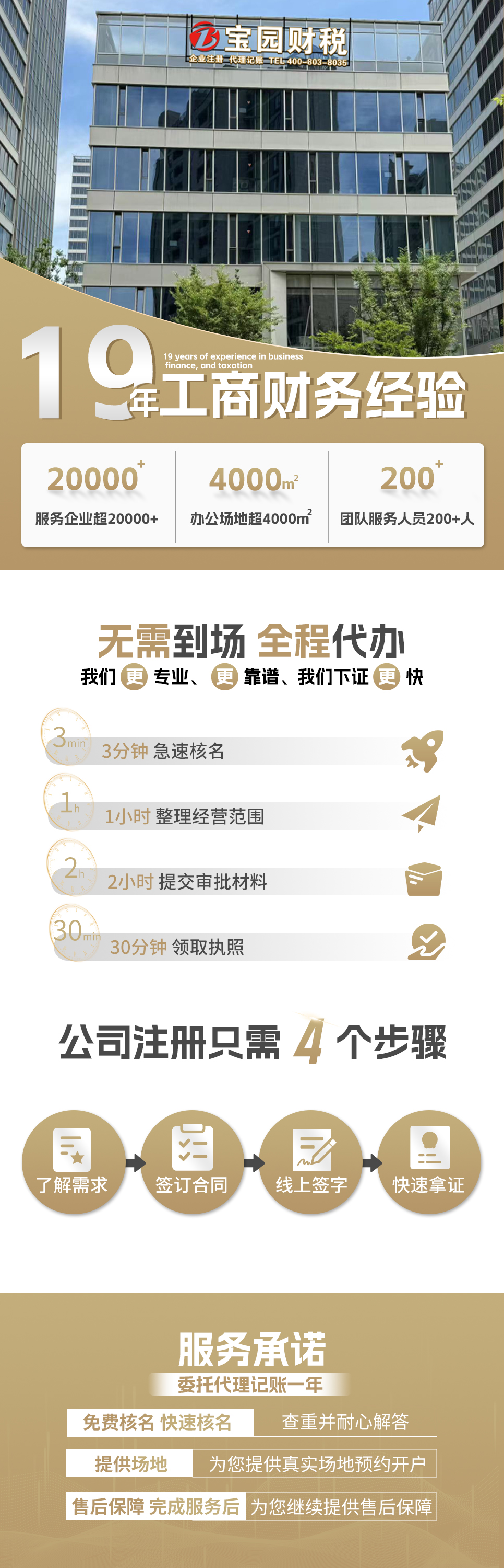 上海宝园财务成立于2006年,目前公司在职员工近200人,在工商财税服务领域打造出一支专业化服务团队,拥有90多位专业财务人员、其中20%具有中级会计职称,30多位资深工商代办经纪人,服务企业超30000家,多次评为先进企业。专业为企业提供公司注册,财务办理、工商变更等一站式工商财务服务。