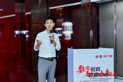 东莞市南城才专专培训中心有限公司CEO、教育部高校毕业生就业协会就业实习实践服务中心副主任闫涵就“解锁社培业务新思路--创新引领、扬帆起航”进行分享。他分享了在当今全球化与数智化加速融合的时代背景下,加速开展国际化产教融合及数智化人才培养的新路径,提出要培养出具有全球竞争力的复合型人才,为社会经济发展注入新的动力,助力全球数智化时代的发展。