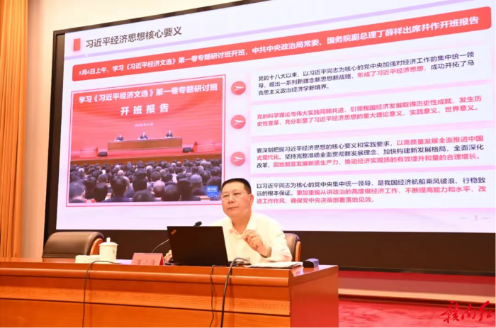会上,潘小海以《学习贯彻习近平经济思想,高质量做好“十五五”规划工作》为题,从新阶段新征程、新形势新挑战、赣州思考建议等三个方面,阐述了深入领会习近平经济思想核心要义的重要意义和高质量做好“十五五”规划工作的方法路径、意见建议。大家一致认为,报告对标中央精神、联系赣州实际,既有深刻的理论阐述,又有生动的实践案例,政治性、思想性、指导性和针对性都很强,要认真学习好、深刻领会好、切实运用好。