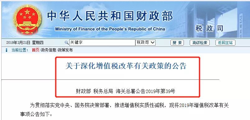 财政部税务总局海关总署公告2019年第39号