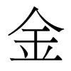 (8) 印;虎符。如:金紫(秦·汉时丞相所用金印紫绶的简称);金爵(指金印紫绶的爵位);金虎符(古时发兵符信);金窠(金印。窠,指其空白处)