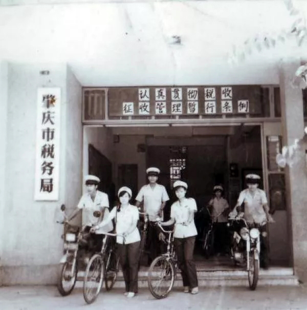 图为1984年,肇庆市税务干部穿着税务制服准备出发去下乡