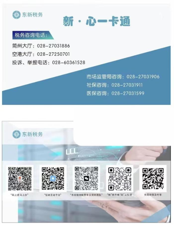 杨娟提到的“一卡通”,是国家税务总局成都东部新区税务局为方便新办企业办理各项涉税业务制作的一张卡片。卡片上详细列明了市场监管、社保、医保等部门热线,同时印制了“马上办”“征纳互动平台”“税务争议调解团队”“新电子税务局知识集锦”等二维码,实现涉税业务办理的系统集成,帮助纳税人缴费人便捷高效了解政策,开展部分业务远程帮办。