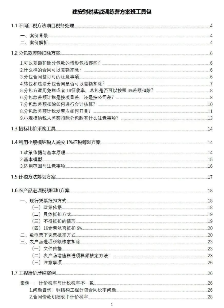 1.分组实训:建安业场景下的增值税实务问题处理与方案出具