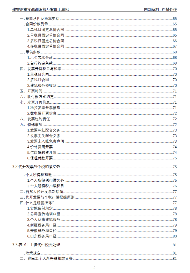 ※吃透应用:熟练掌握建安企业疑难财税问题解决方案,包括工程计价涉税及工程价款调整、挂靠项目财税筹划、农民工用工模式、合同涉税管理、留抵税额化解、无票成本解决方案等。