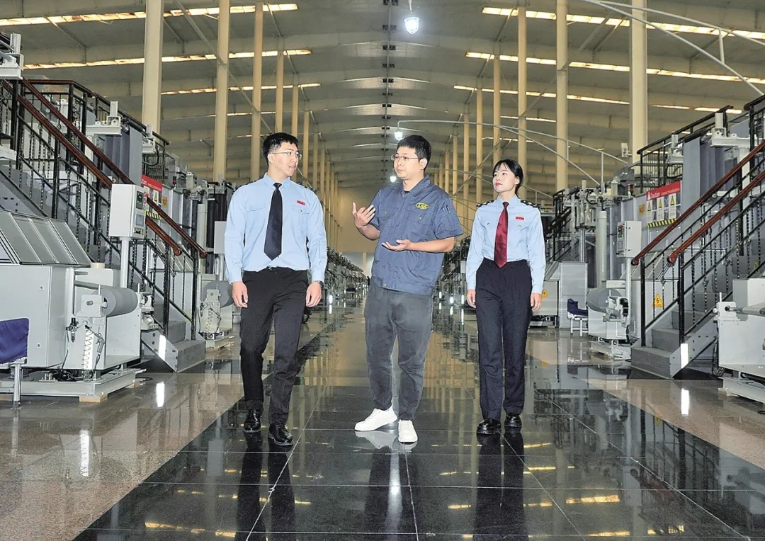 (近日,国家税务总局阜新高新技术产业开发区税务局开展“春风送惠助科企”活动,走进科技企业了解情况、宣传政策、解决难题。图为该局干部在阜新中孚轻金属科技有限公司生产车间走访。满大千 朱俊萤 摄)