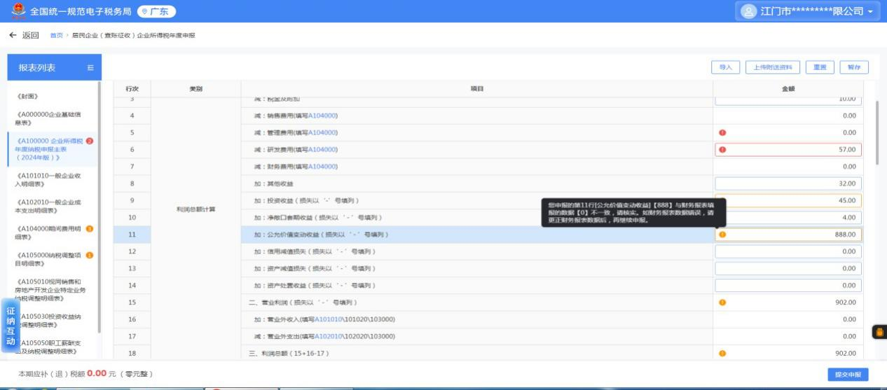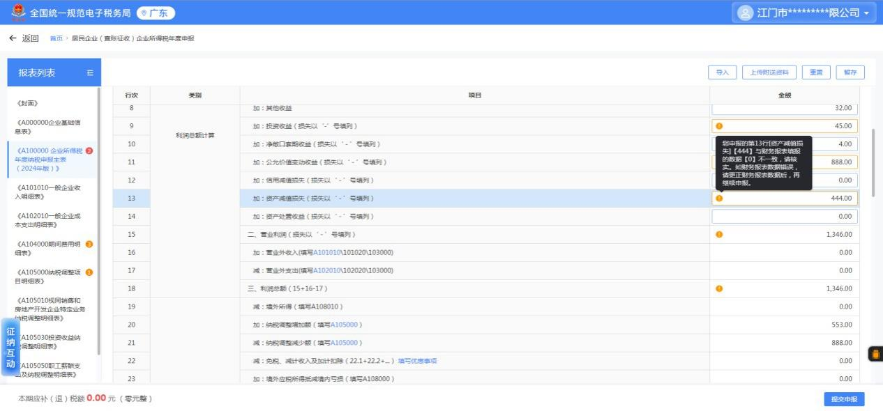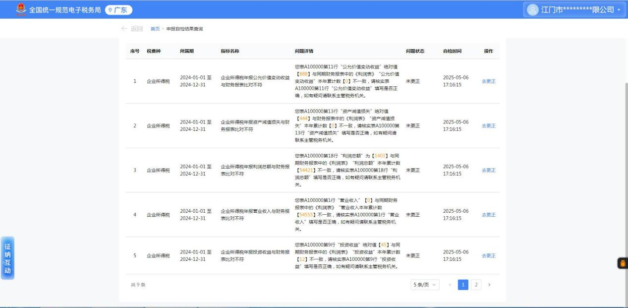 对增值税、企业所得税、房产税、文化事业建设费等设有自检规则的税费种,系统自动进行申报数据检查,对比对不符的情况,向纳税人自动推送提示提醒。