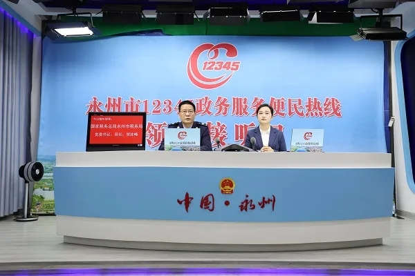 在湖南,国家税务总局永州市税务局党委书记、局长贺冰峰走进永州市12345政务服务便民热线接听室,现场参与“领导接听日”活动,解答市民关心关注的税费问题。