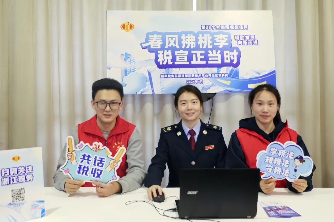 在浙江,国家税务总局温州高新技术产业开发区税务局开展“春风拂桃李 税宣正当时”主题宣传活动,为大学生创新创业给予涉税辅导,助力高校毕业生梦想起航。