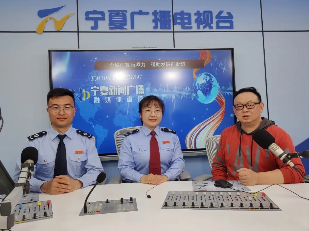 在宁夏,国家税务总局宁夏区税务局12366纳税缴费服务热线工作人员,走进宁夏广播电视台《1061民生热线》融媒体直播间,开展“个税年度汇算巧添力 税助发展向新进”直播答疑。