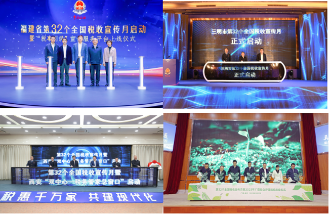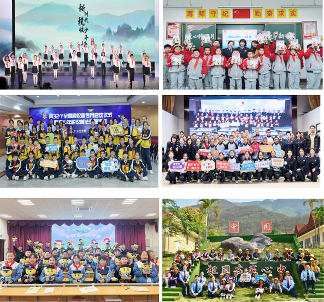 (一)上下联动,壮大宣传声势。税务总局联合北京、河北、浙江、广东、贵州等省局,首次以青少年税收普法专题活动的形式启动全国税收宣传月,各地纷纷参照总局模式,形成上下呼应的庞大声势。天津市局走进百年名校南开中学举办第32个全国税收宣传月暨税法进校园活动启动仪式,给中学师生送上税宣文创产品、普及税收知识。四川省局联合西南财经大学开展税收宣传月启动暨“四川省税收普法教育基地”揭牌仪式,发布大学生税收普法志愿者招募通知,设置“智慧办税+政策辅导+税史博览+就业服务+文创产品打卡”五大主题展区,为学校师生提供沉浸式税务体验。西藏自治区局联合宁波市局开展第32个全国税收宣传月启动仪式暨“税收宣传跨山海 一路童行向未来”甬藏税法云端联学活动,让拉萨北京实验中学和宁波市江北中心学校以网络视频连线方式,实现山海“云携手”,税法“云学习”。此外江西、宁夏、青岛等地也走进当地学校开展普法活动,引导青少年从小树立税收法治观念,充分发挥税收普法辐射效应。