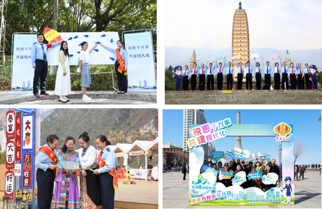 大连市局邀请专家学者、企业家代表与税务人员共同走进大连新闻传媒集团4K-XR虚拟现实演播室,聚焦中国式现代化,以智税对话的形式深入探讨税收现代化如何服务中国式现代化。厦门市局聘请“春风税月讲述人”,通过各界代表的真情讲述,持续扩大税收宣传月和“春风行动”声势,共筑和谐美好的税收社会氛围。河北辛集市局选派业务骨干组成政策宣传队,到万达广场开展“赢盲盒趣味问答”活动,向往来市民发放税费政策大礼包,吸引了大量群众驻足参与。云南大理州局组织税务干部、代表委员、学生、群众、非遗传承人共300余人,在《去有风的地方》景点打卡,以共同拍摄“快闪”视频的形式启动第32个全国税收宣传月。广东韶关市局开展“绿游税月”税收文化活动,邀请社会各界代表齐登“春天的列车”,感受税务部门助推经济社会高质量发展的强劲动力。