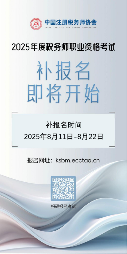 还在遗憾错过税务师考试首次报名?别担心!2025年度税务师职业资格考试补报名即将于8月11日10:00火热开启,一直持续到8月22日17:00。