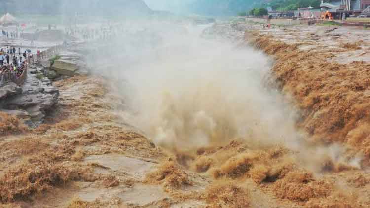 近日,受上游降雨影响,黄河晋陕峡谷水量大涨,位于山西吉县和陕西宜川县交界的壶口瀑布迎来伏汛,主副瀑布连成一线。近日,受上游降雨影响,黄河晋陕峡谷水量大涨,位于山西吉县和陕西宜川县交界的壶口瀑布迎来伏汛,主副瀑布连成一线。