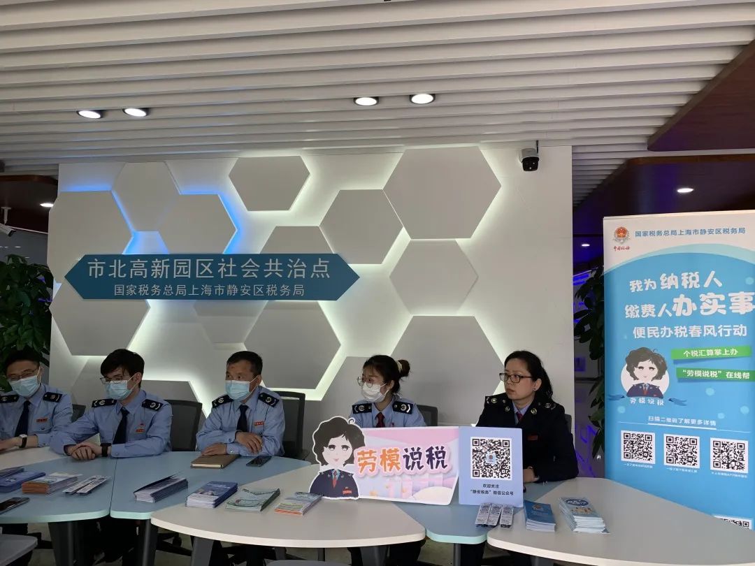 静安区税务局与第三税务分局一起走进市北园区智慧税务共治点,围绕银税互动、延续执行的优惠政策等开设“劳模说税”云直播。同时,通过现场咨询,为纳税人解答个人所得税相关问题。