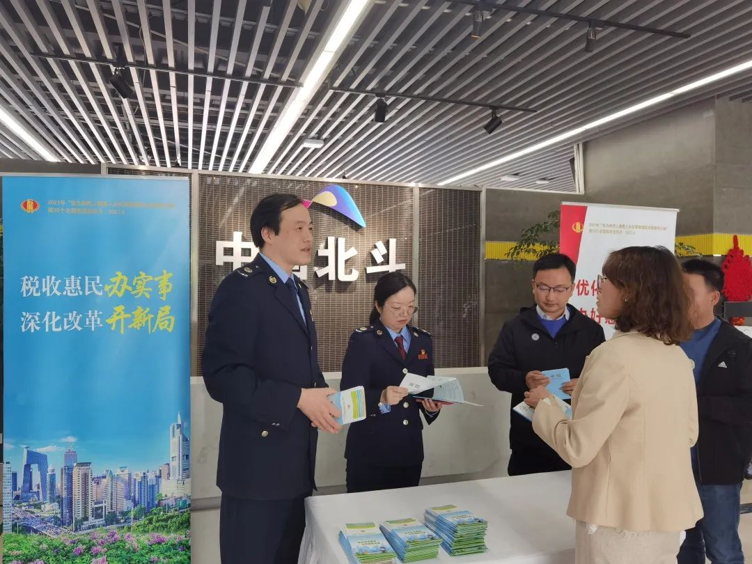 税宣月期间,青浦区税务局联合江浙两省吴江、嘉善税务局开展税收宣传进“科创园区”活动。4月22日,青浦区税务局税宣分队来到长三角示范区内以导航定位技术为支撑、以位置服务为核心的北斗产业技术创新西虹桥基地,向园区企业进行高新企业和研发费用加计扣除相关政策宣传,并对基地的大批量科研人才进行个税综合所得年度汇算清缴,助力北斗园区打造国家级示范园区和赋能长三角一体化。