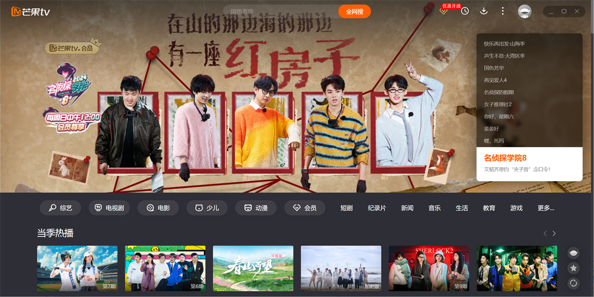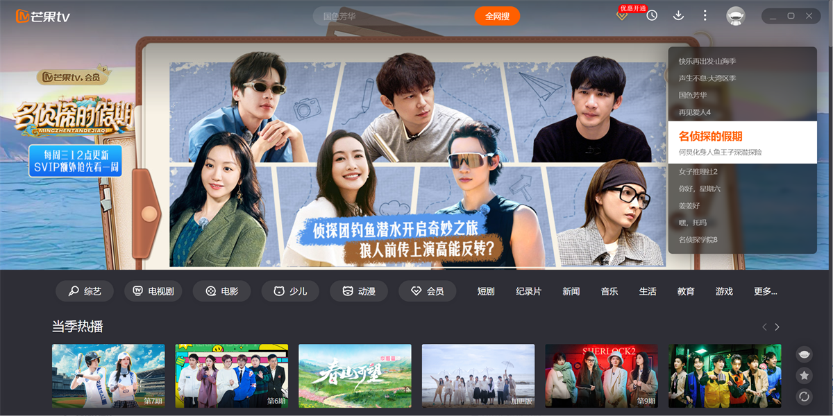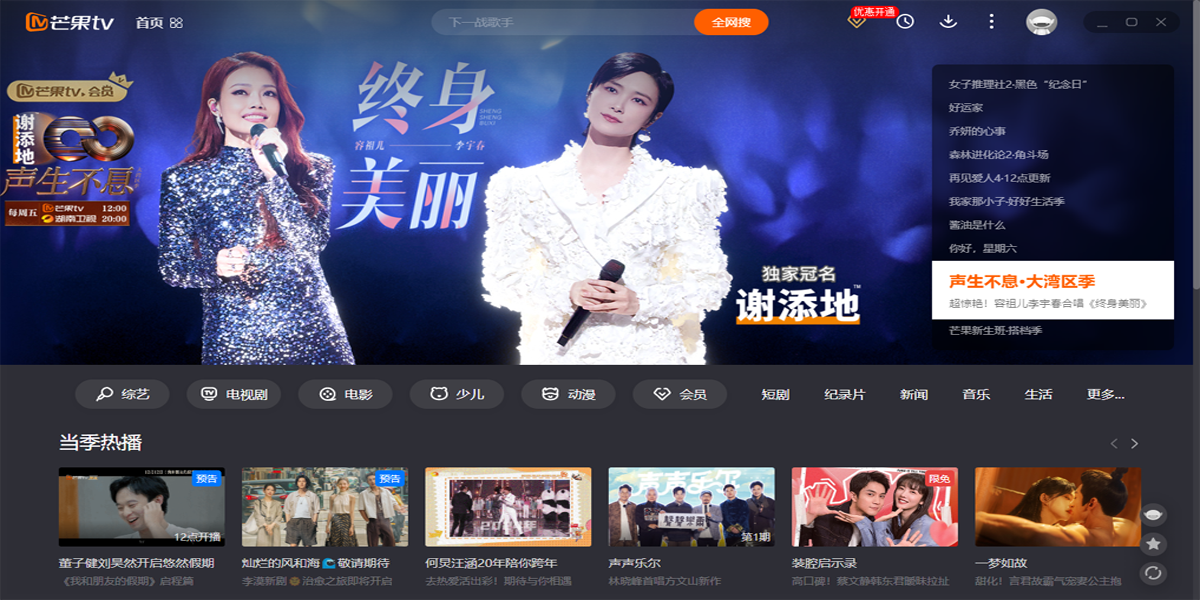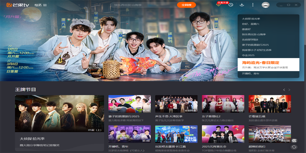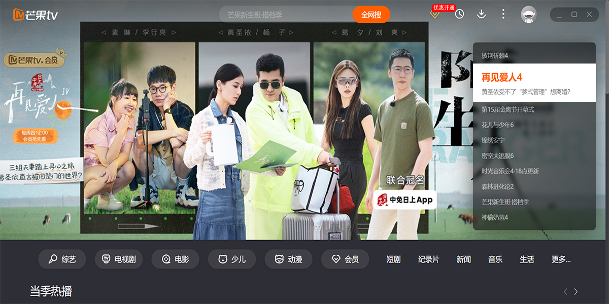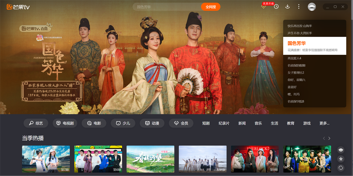 芒果TV电脑版是湖南广电旗下唯一互联网视频平台,聚合湖南卫视王牌栏目高清直播点播,同步全球热剧综影音内容。平台独播《乘风2025》《你好,星期六》等S级综艺,上线《仁心俱乐部》《国色芳华》等爆款剧集,更囊括《大侦探·拾光季》《声生不息·大湾区季》等原创精品。支持4K画质、多端云同步、个性化推荐,会员专享跳过广告、独家花絮等特权。芒果TV以“天生青春”为品牌主张,持续输出《妻子的浪漫旅行2025》《名侦探学院第八季》等创新IP,打造集视听盛宴、互动社区、直播电商于一体的全场景娱乐生态,引领行业盈利模式创新。在天极出彩软件园,您可以直接下载芒果TV的最新电脑版,并查看软件功能介绍、近期热播剧、软件更新日志等信息。天极出彩软件园为您提供安全的下载环境,确保下载过程流畅无忧。