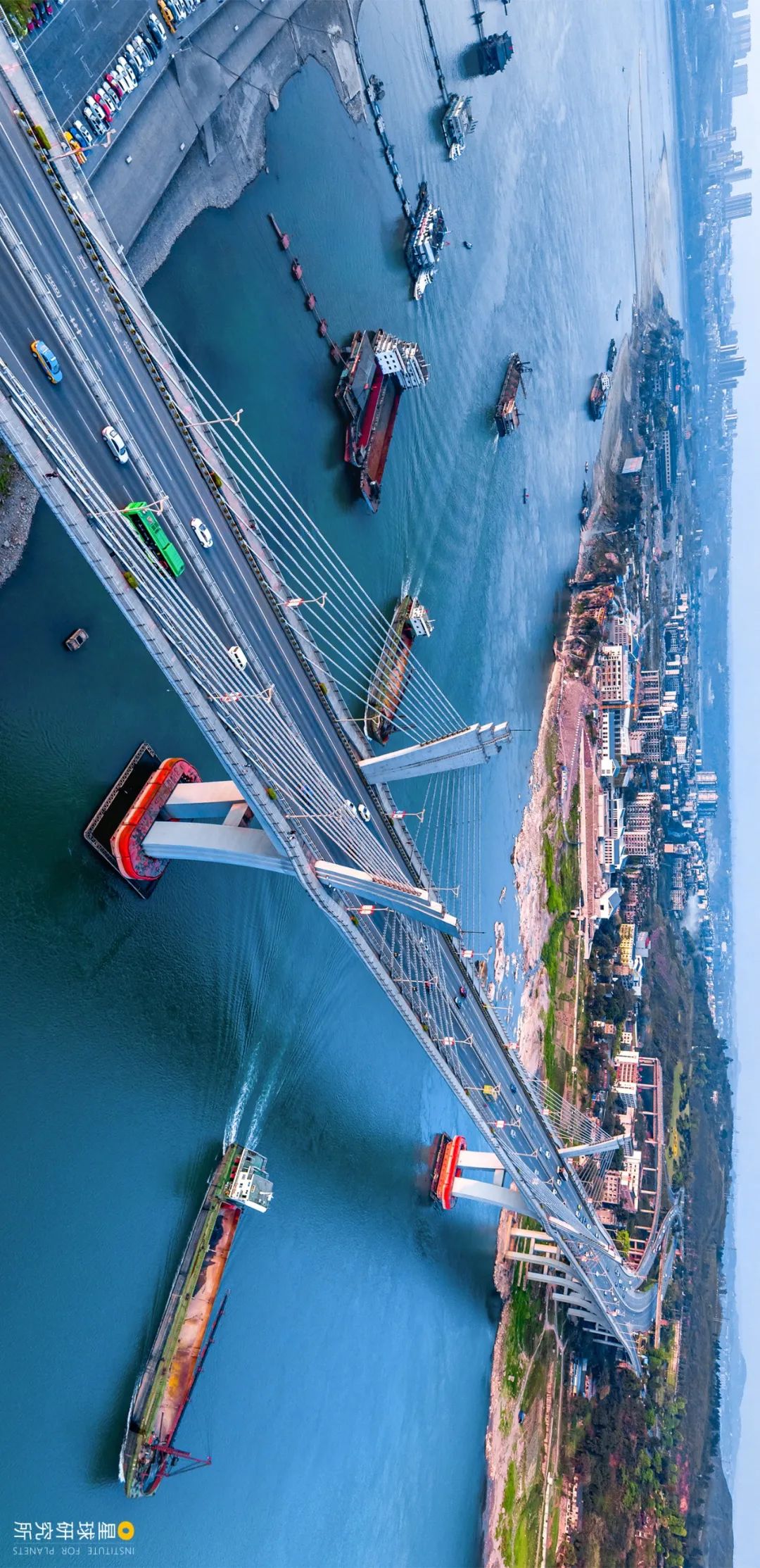 请横屏观看国窖大桥,一艘艘货船正驶出港口 | 摄影师@曹明雄
