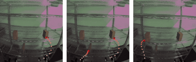 该研究训练的世界模型能够根据不同的动作指令产生不同的结果,下面展示了在四种不同轨迹条件下的世界模型生成的效果,每种轨迹都从相同的初始帧开始。