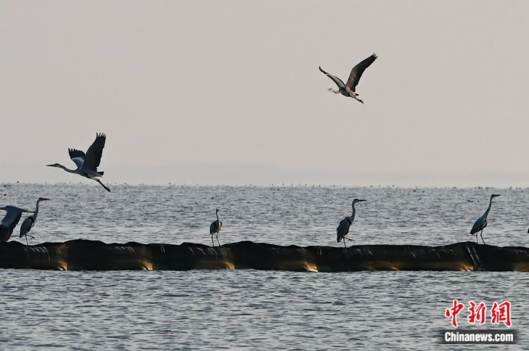 无人机拍摄的巢湖湿地景色。 中新社记者 张娅子 摄