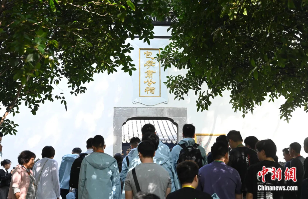 香港青年代表团在合肥包公园景区内参观,探寻“包公文化”。中新社记者 韩苏原摄