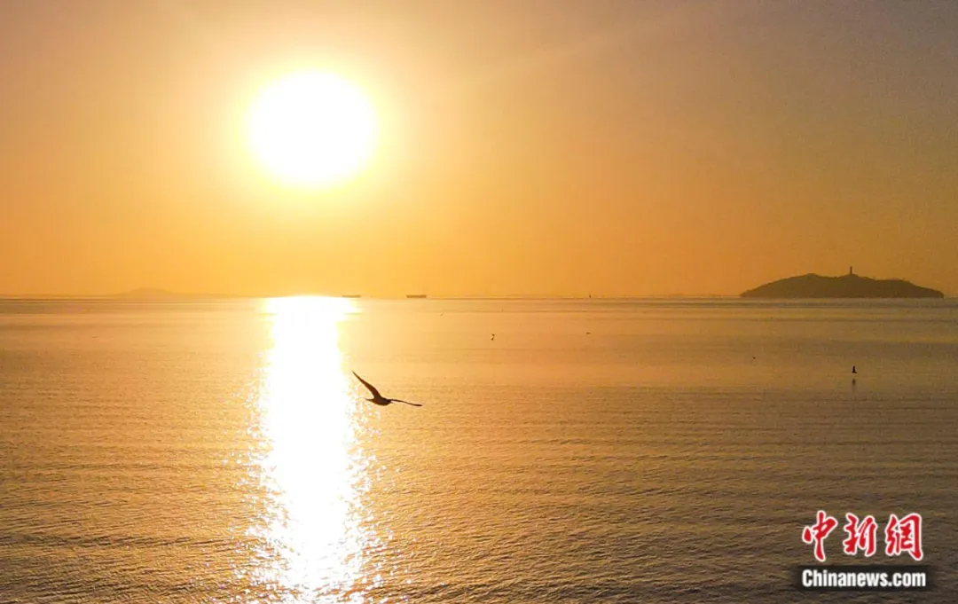 无人机拍摄的巢湖湿地落日景色。 中新社记者 张娅子 摄