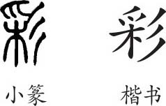 《彩》字义,《彩》字的字形演变,小篆隶书楷书写法《彩》