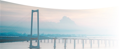 深中通道位于珠江三角洲伶仃洋海域,是广东省境内连接深圳市和中山市以及广州市的跨海通道。图为从广东中山眺望深中通道。